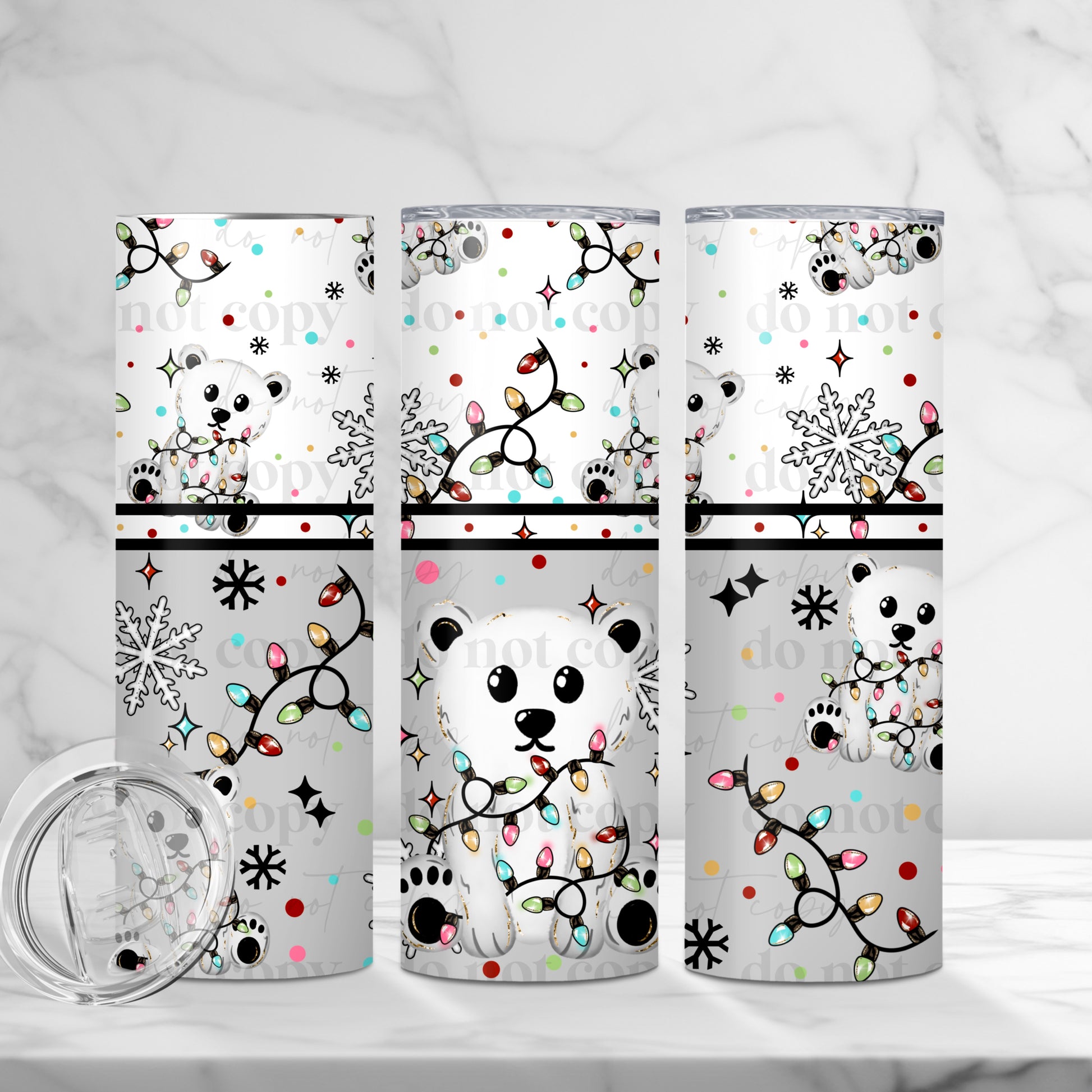 Polar Bear w. Christmas Lights Skinny Tumbler